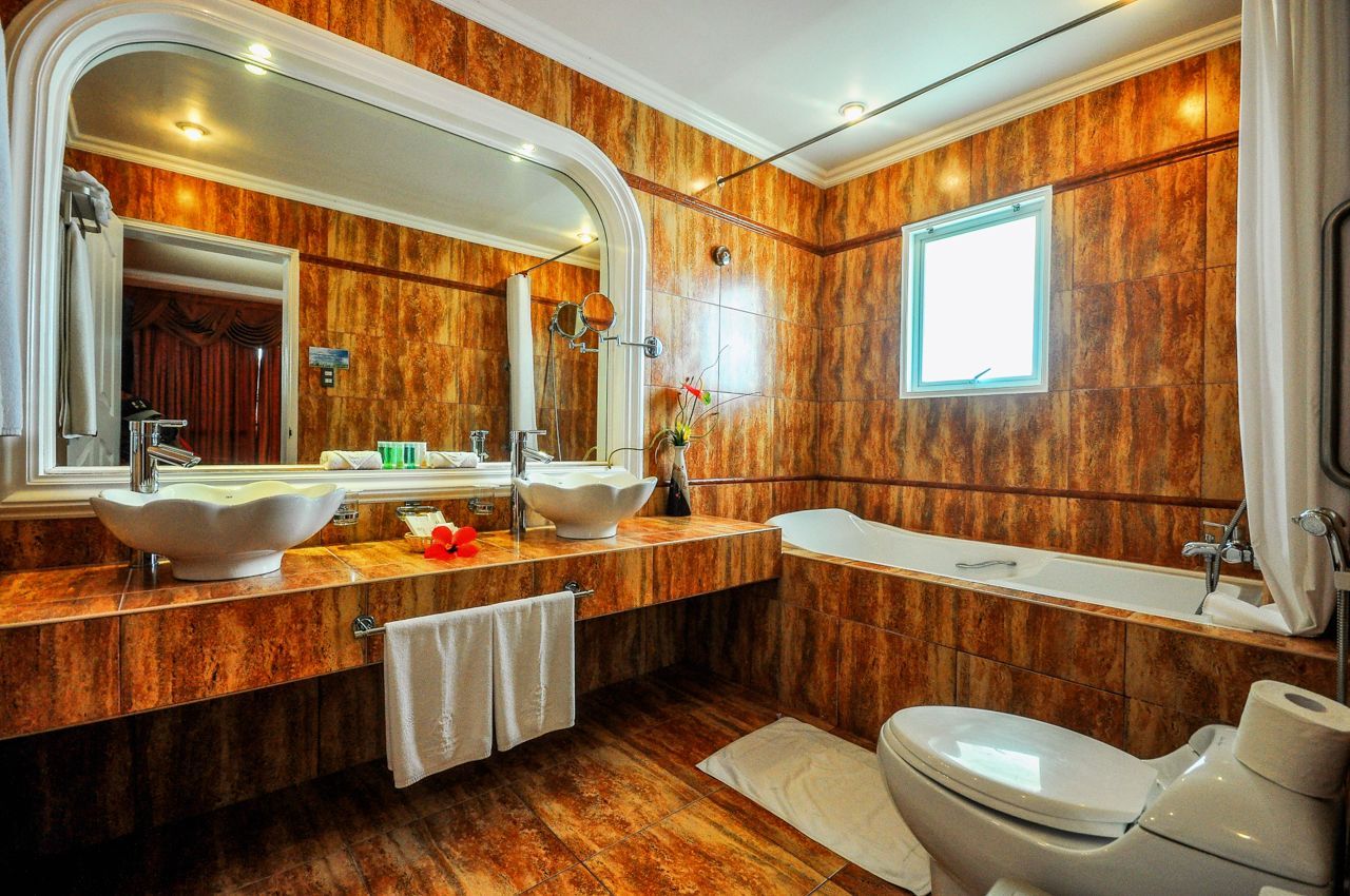The rooms are 120 square-meters, fully air-conditioned, and with room darkening drapes. They also feature a desk and chair set for those that need to work in paradise.